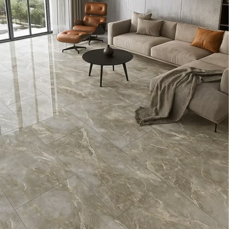 تُضفي هذه البلاطات الخزفية المصقولة مظهرًا عصريًا مستوحى من الرخام، مُضفيةً لمسةً من الأناقة والرقي على أي مساحة. حجمها الكبير (600×1200 مم) يُعزز التناسق البصري، ويجعل الغرف تبدو أكثر اتساعًا وفخامة. تتميز بمتانتها وسهولة تنظيفها وتعدد استخداماتها، مما يجعلها مثالية للديكورات الداخلية السكنية والتجارية.