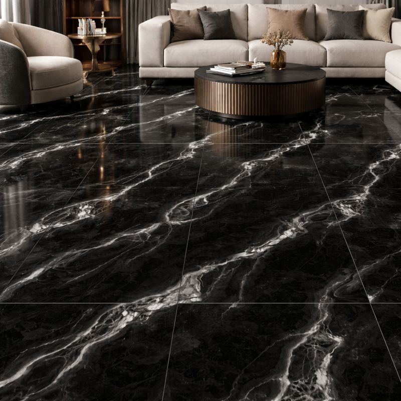 يُضفي نسيج الرخام الأسود سحراً خالداً وأنيقاً على أي غرفة. ويُضفي سطحه المصقول لمسة نهائية ناعمة ولامعة تعكس الضوء بشكلٍ رائع. هذا المظهر يُعزز من أجواء الديكور الداخلي، ويجعله يبدو أكثر فخامة.
