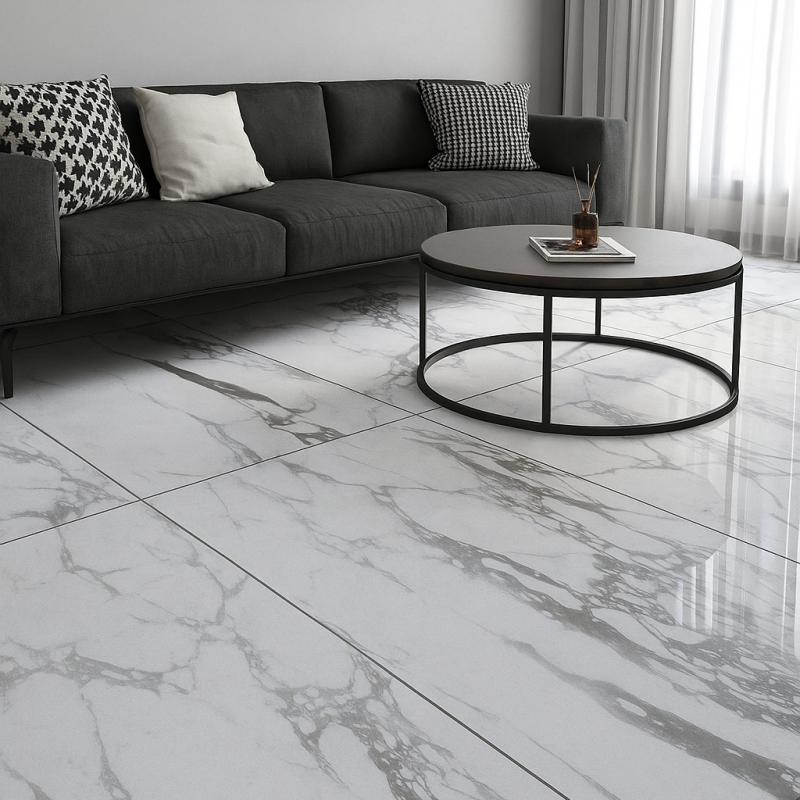 يتميز هذا البلاط بسطح رخامي أنيق مع لمسة نهائية زجاجية شديدة اللمعان تُضفي لمسةً جماليةً على أي ديكور داخلي. تصميمه الكبير بمقاس 600 × 1200 مم يُضفي مظهرًا فاخرًا متجانسًا مع خطوط جص أقل. مثالي للجدران والأرضيات، يجمع بين الأناقة الخالدة والبنية الخزفية المتينة.