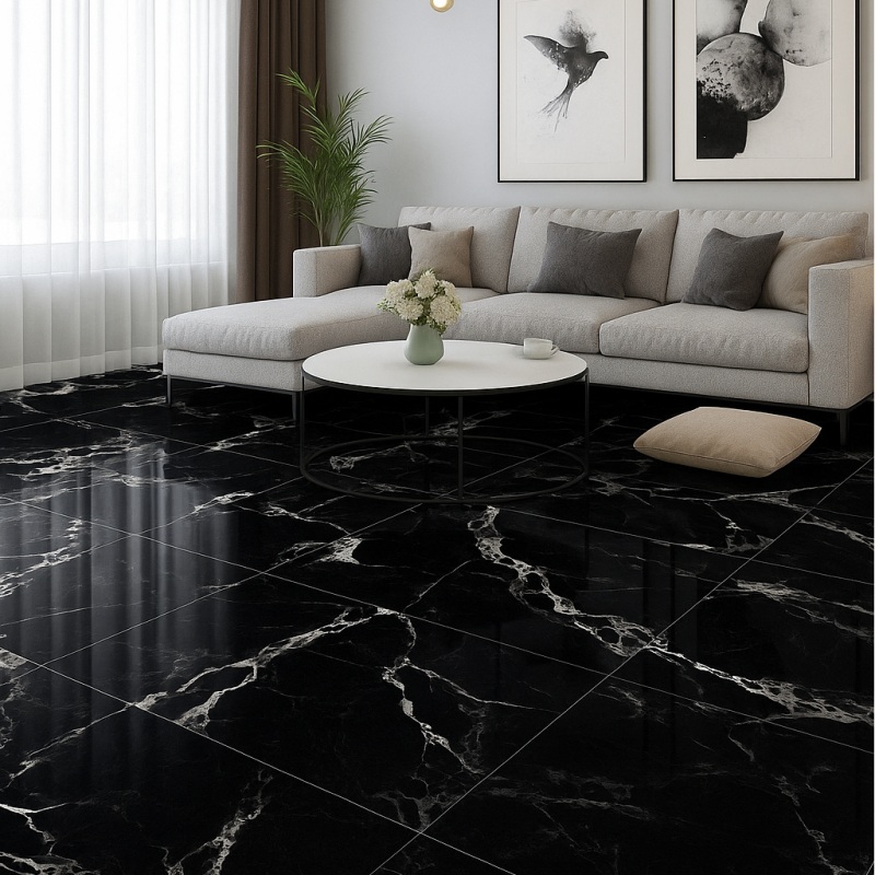 يُعزز الطلاء المصقول انعكاس الضوء، مُضيفًا سطوعًا وعمقًا لأي مساحة. كما يُوفر سطحًا أملسًا كالمرآة، سهل التنظيف والصيانة. كما يُعزز هذا الطلاء من أناقة البلاط، مما يجعله مناسبًا للتصاميم الفاخرة.