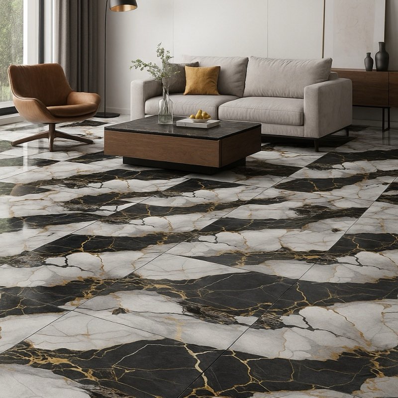 Made from refined porcelain materials, these tiles offer excellent resistance to scratches, stains, and daily wear.