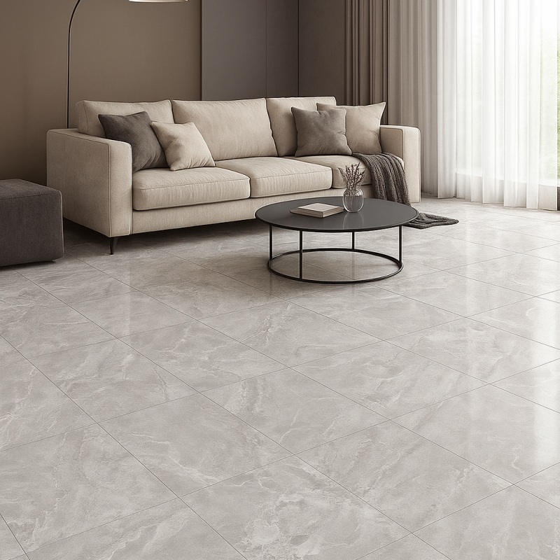 تتميز هذه البلاطات الأنيقة باللون الرمادي الفاتح بسطح مصقول ناعم يُضفي لمسةً راقية وبسيطة على أي ديكور داخلي عصري. صُممت هذه البلاطات لتمنح المتانة والجمال، وتتميز بملمس ناعم يعكس الضوء بشكل جميل، مما يُضفي عليها مظهرًا مشرقًا وواسعًا. مثالية للأرضيات السكنية والتجارية، حيث تجمع بين الأناقة الخالدة والأداء طويل الأمد.