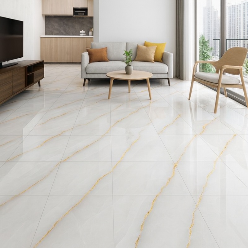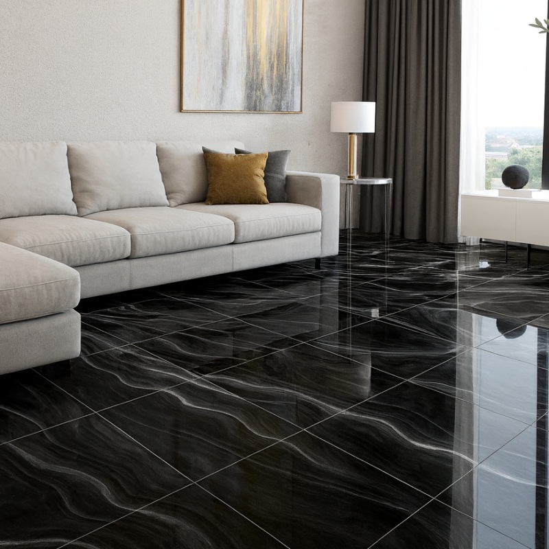 يوفر هذا البلاط سطحًا عاكسًا لامعًا يعزز الشعور بالمساحة في التصميمات الداخلية العصرية. يضفي ملمسه الناعم مظهرًا أنيقًا ونظيفًا يناسب أجواء التصميم الفاخرة. ويحافظ على لمعانه مع مرور الوقت، مما يساعد الأرضيات على الحفاظ على مظهرها الراقي.
