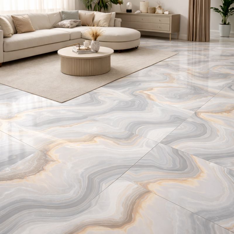 يُعزز السطح اللامع نقش الرخام ويمنح مظهرًا أنيقًا وبسيطًا. كما يُساهم انعكاس الضوء في تحسين الإضاءة العامة في المساحات الداخلية. وتُضفي هذه اللمسة النهائية مظهرًا متناسقًا واحترافيًا على المساحات الكبيرة.
