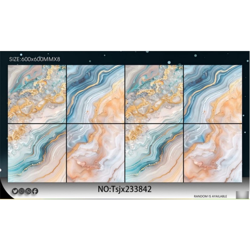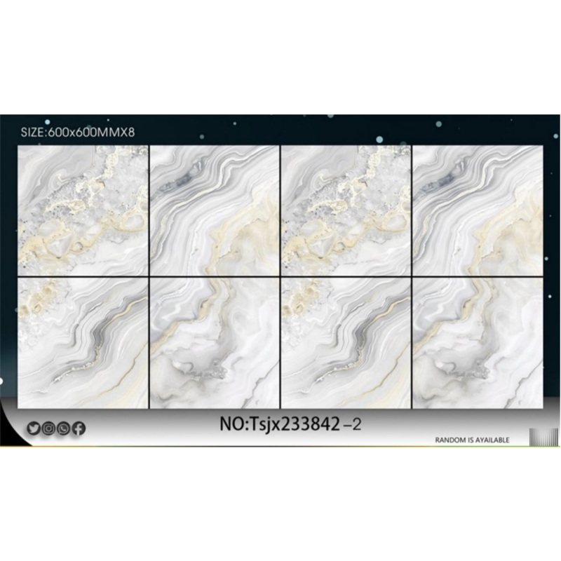 إذا كانت الكمية المطلوبة كافية بحيث يغطي تصميم واحد أكثر من حاوية 20 قدمًا (حوالي 2000 متر مربع لكل تصميم)، فيمكننا قبول طلبات التصنيع حسب الطلب (OEM) والكميات الإجمالية التي تزيد عن 5 حاويات لكل مقاس. يمكن طباعة شعارك على تصميم الكرتون وجسم البلاط.