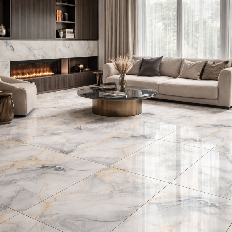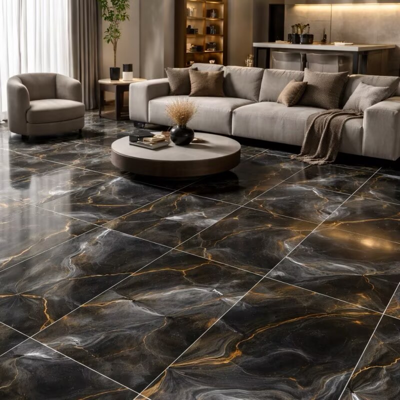 يُضفي السطح المصقول لمسة نهائية لامعة وراقية تُعزز الأجواء العامة للمساحات الداخلية. وتُضفي عروق الذهب تأثيرًا زخرفيًا أنيقًا يُكمل التصاميم العصرية والكلاسيكية، كما تُضفي إحساسًا بالفخامة والعمق البصري على الجدران والأرضيات.