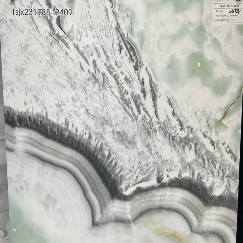 تُضفي هذه البلاطات الخزفية مظهرًا رخاميًا راقيًا، يُضفي لمسةً أنيقةً على أي ديكور داخلي عصري. تصميمها الكبير بأبعاد 600×1200 مم يُوفر أسطحًا سلسة مع خطوط جص أقل، مما يُضفي لمسةً نهائية أنيقةً ونظيفةً. يُضفي ملمسها اللامع سطوعًا وعمقًا، مما يجعل مساحات المعيشة تبدو أكثر اتساعًا وفخامةً.