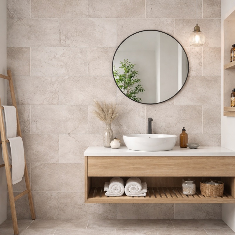 تتميز مادة البورسلين بكثافة عالية وأداء موثوق به لتطبيقات الجدران. يحافظ البلاط على شكله وجودة سطحه على المدى الطويل، مما يضمن نتائج مستقرة في التركيبات الداخلية المتكررة.