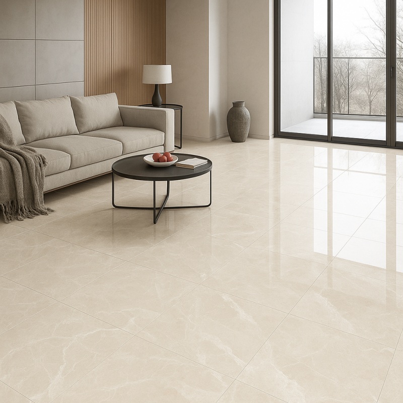 يمنح السطح الأملس واللامع البلاط مظهرًا أنيقًا، كما يسهل تنظيفه وصيانته. كما أنه مقاوم للبقع والخدوش، ويحافظ على لمعانه حتى بعد الاستخدام طويل الأمد. هذا السطح المصقول يُعزز جمالية البلاط وعمليته.