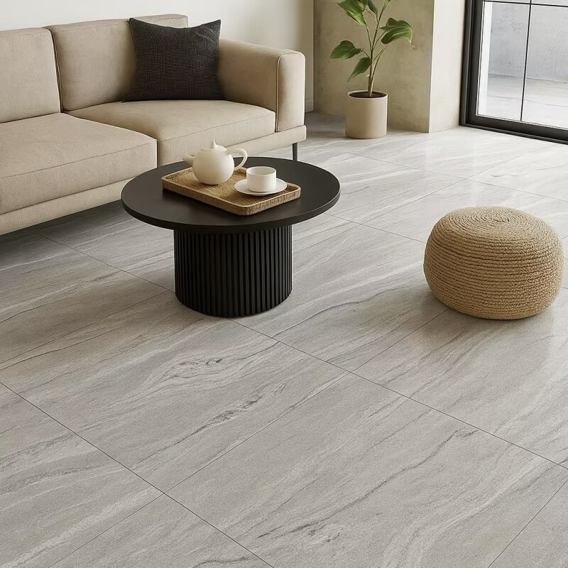 These tiles bring a natural stone appearance that blends modern elegance with rustic charm. The rich texture and 600x600mm format create a seamless, spacious look for any interior space. Their durable porcelain body ensures long-lasting performance and easy maintenance for both residential and commercial floors.