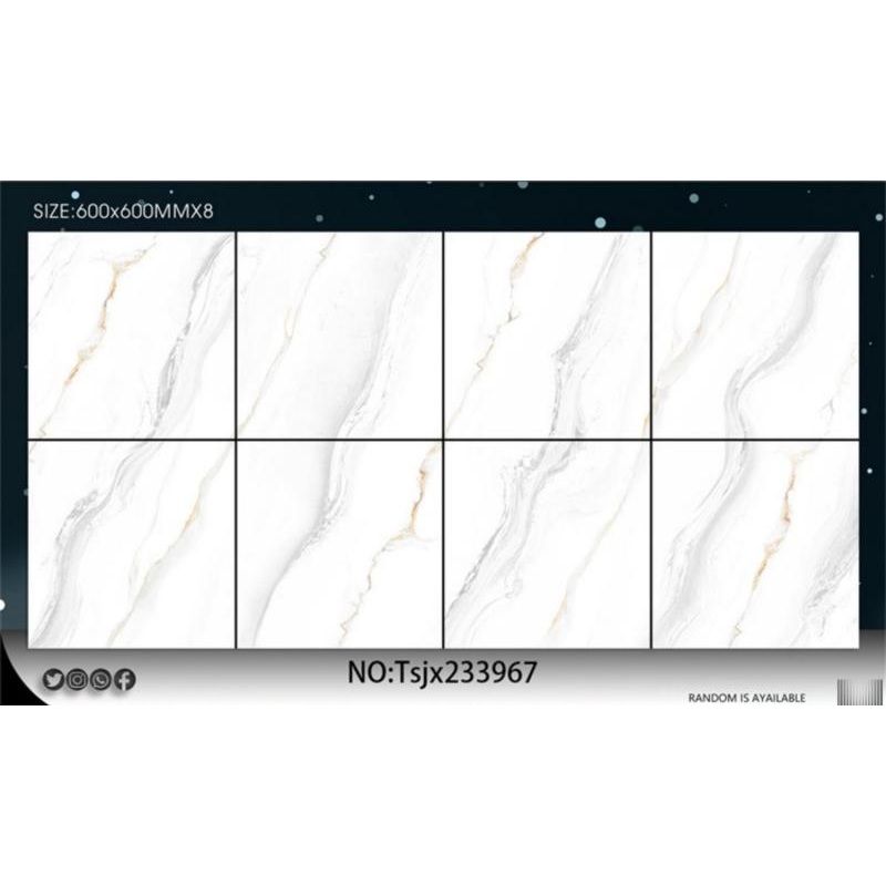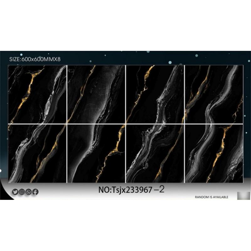 إذا كانت الكمية المطلوبة كافية بحيث يغطي تصميم واحد أكثر من حاوية 20 قدمًا (حوالي 2000 متر مربع لكل تصميم)، فيمكننا قبول طلبات التصنيع حسب الطلب (OEM) والكميات الإجمالية التي تزيد عن 5 حاويات لكل مقاس. يمكن طباعة شعارك على تصميم الكرتون وجسم البلاط.