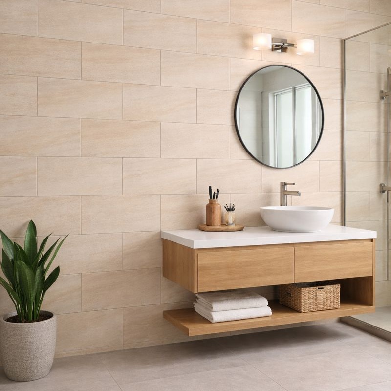 يتميز هذا البلاط الخزفي بسطح غير لامع وألوان فاتحة، مما يضفي على الجدران الداخلية مظهرًا أنيقًا ومريحًا. صُمم خصيصًا للحمامات والأماكن الرطبة، حيث يساعد على تقليل الوهج، وتحسين ثبات السطح، والحفاظ على مظهره الجديد. يُستخدم هذا البلاط على نطاق واسع في الحمامات، وأماكن الغسيل، والفنادق، والشقق، ومشاريع تجديد المنازل.